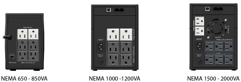 Power ratingVA/Watt650VA/390W850VA/480W1000VA/600W1200VA/720W1500VA/900W2000VA/1200W